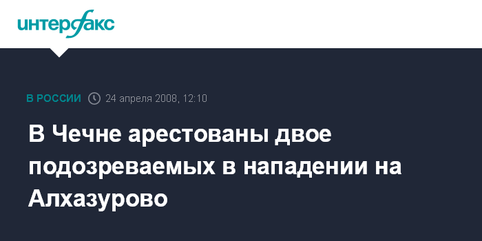 Грозный. 24 апреля. INTERFAX.RU - В Чечне заключены под стражу двое молодых людей, подозреваемых в причастности к вооруженному нападению на село Алхазурово Урус-Мартановского района, сообщила "Интерфаксу" официальный представитель Следственного управления СКП РФ по ЧР Марьям Налаева.
