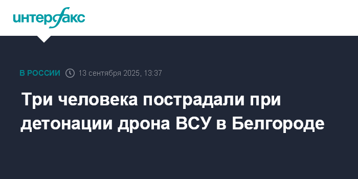 Москва. 13 сентября. INTERFAX.RU - Три человека пострадали в результате детонации БПЛА возле пассажирского автобуса в Белгороде, сообщил губернатор Вячеслав Гладков.