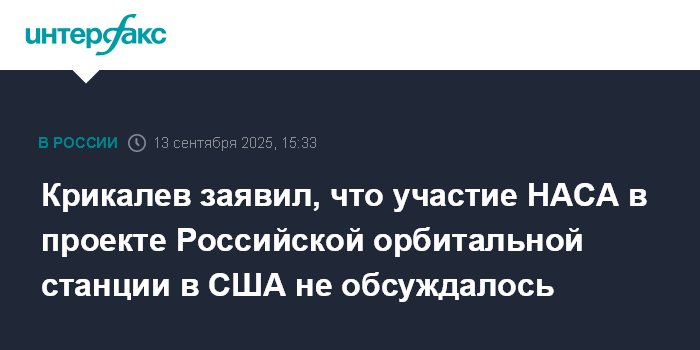 Крикалев заявил, что участие НАСА в проекте Российской орбитальной станции в США не обсуждалось