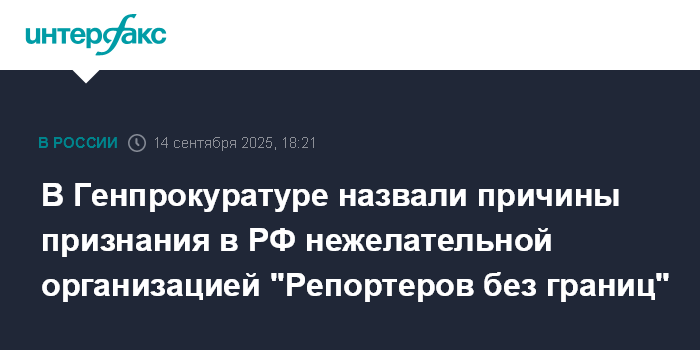 В Генпрокуратуре назвали причины признания в РФ нежелательной организацией "Репортеров без границ"