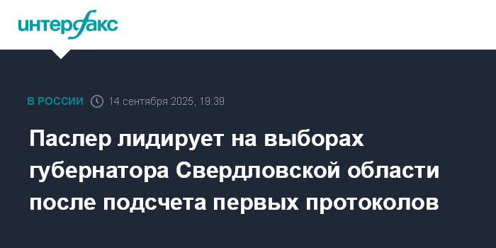 Паслер лидирует на выборах губернатора Свердловской области после подсчета первых протоколов