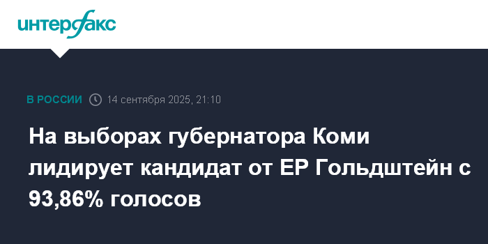 На выборах губернатора Коми лидирует кандидат от ЕР Гольдштейн с 93,86% голосов