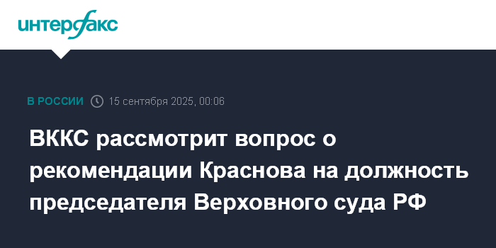 ВККС рассмотрит вопрос о рекомендации Краснова на должность председателя Верховного суда РФ