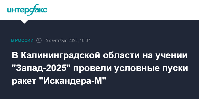 "В ходе совместного стратегического учения "Запад-2025" расчеты оперативно-тактических ракетных комплексов "Искандер-М" армейского корпуса Ленинградского военного округа выполнили электронные пуски баллистических ракет в Калининградской области", - говорится в сообщении ведомства.