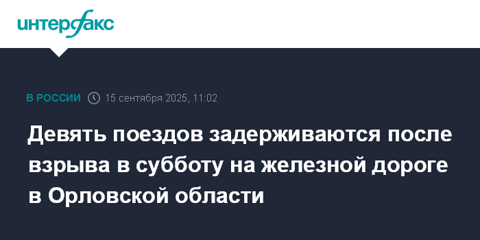Девять поездов задерживаются после взрыва в субботу на железной дороге в Орловской области