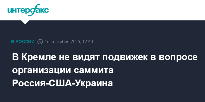 Москва. 15 сентября. INTERFAX.RU - Никаких подвижек в вопросе организации саммита Россия-США-Украина на данный момент нет, заявил на брифинге пресс-секретарь президента России Дмитрий Песков.