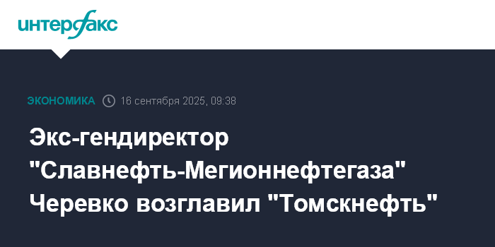 Москва. 16 сентября. INTERFAX.RU - Новым генеральным директором АО "Томскнефть" ВНК" (на паритетных началах принадлежит ННК и "Газпром нефти") стал Михаил Черевко, написал в Telegram мэр города Стрежевого Валерий Дениченко.