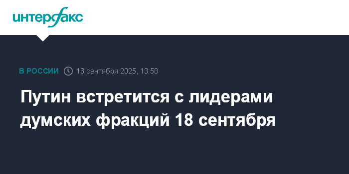 Путин встретится с лидерами думских фракций 18 сентября