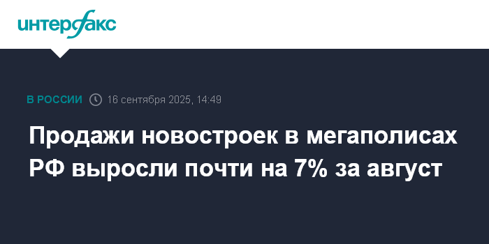 Продажи новостроек в мегаполисах РФ выросли почти на 7% за август