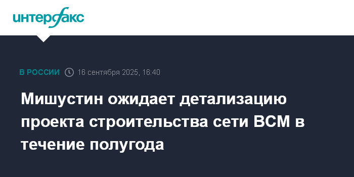 Москва. 16 сентября. INTERFAX.RU - Детализация проекта строительства сети высокоскоростных железнодорожных магистралей (ВСМ) должна быть подготовлена в течение полугода, заявил премьер-министр Михаил Мишустин на стратегической сессии по развитию скоростного транспортного сообщения.