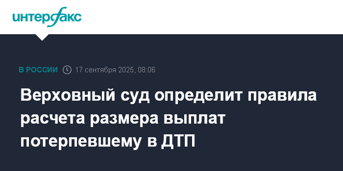 Верховный суд определит правила расчета размера выплат потерпевшему в ДТП