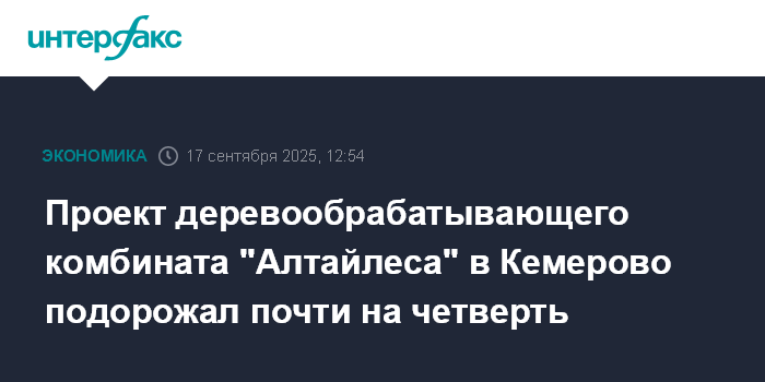 Проект деревообрабатывающего комбината "Алтайлеса" в Кемерово подорожал почти на четверть