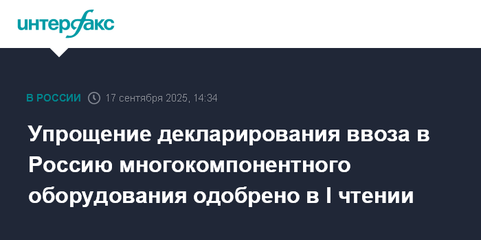 Упрощение декларирования ввоза в Россию многокомпонентного оборудования одобрено в I чтении