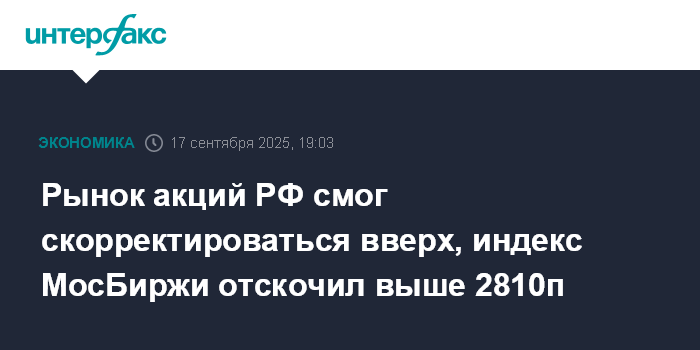 Рынок акций РФ смог скорректироваться вверх, индекс МосБиржи отскочил выше 2810п