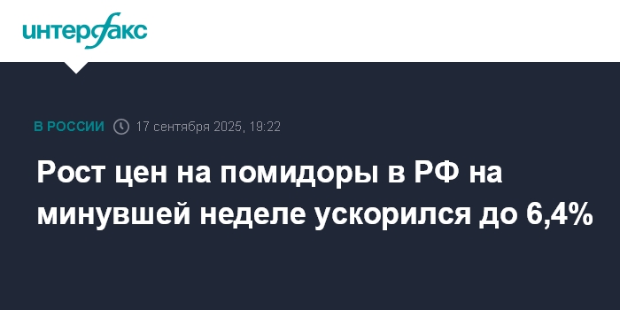 Рост цен на помидоры в РФ на минувшей неделе ускорился до 6,4%