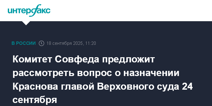 Комитет Совфеда предложит рассмотреть вопрос о назначении Краснова главой Верховного суда 24 сентября