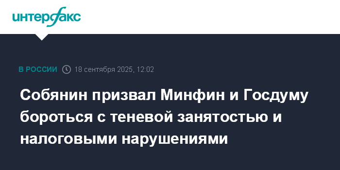 Собянин призвал Минфин и Госдуму бороться с теневой занятостью и налоговыми нарушениями