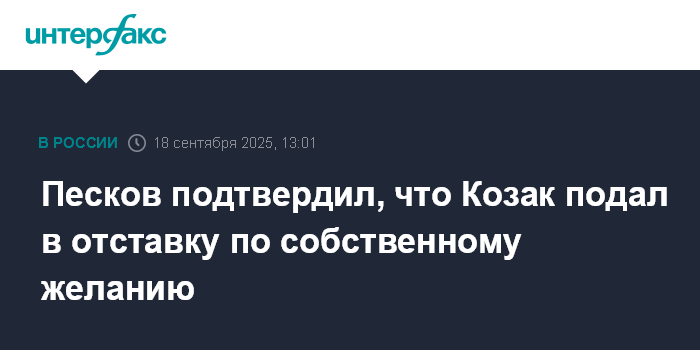 Песков подтвердил, что Козак подал в отставку по собственному желанию