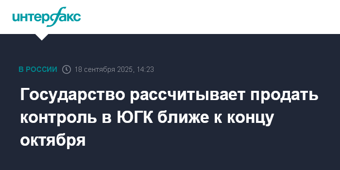 Государство рассчитывает продать контроль в ЮГК ближе к концу октября