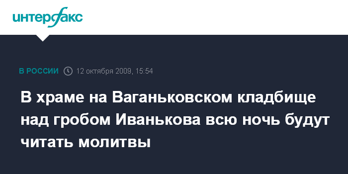 В храме на Ваганьковском кладбище над гробом Иванькова всю ночь будут читать молитвы