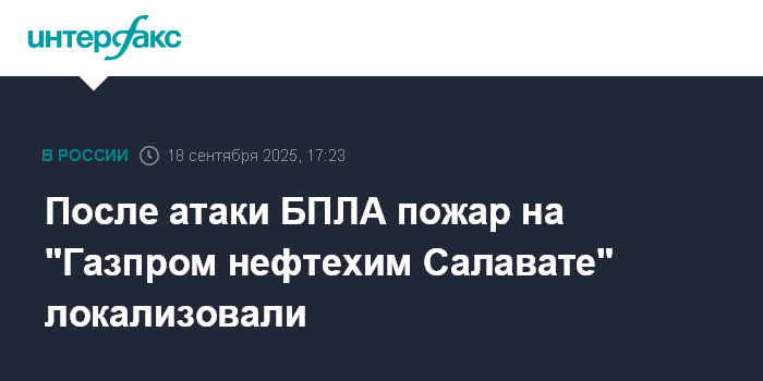 Москва. 18 сентября. INTERFAX.RU - "Технологические процессы на "Газпром нефтехим Салавате" (ГНС), на который утром была совершена атака БПЛА, не нарушены, завод работает в штатном режиме, сообщает пресс-служба главы Башкирии Радия Хабирова после выездного заседания республиканского оперативного штаба. Заседание прошло на площадке предприятия.