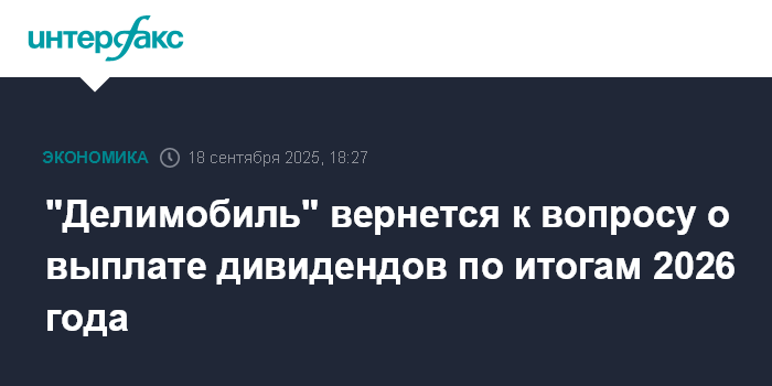 Москва. 18 сентября. INTERFAX.RU - ПАО "Каршеринг Руссия" вернется к вопросу о выплате дивидендов по итогам 2026 года, так как сразу после периода активных инвестиций делать это было бы не совсем правильно, заявил "Интерфаксу" основатель и председатель совета директоров "Делимобиля" Винченцо Трани.
