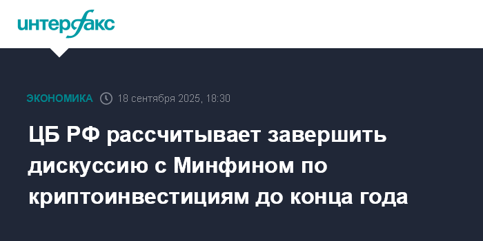ЦБ РФ рассчитывает завершить дискуссию с Минфином по криптоинвестициям до конца года