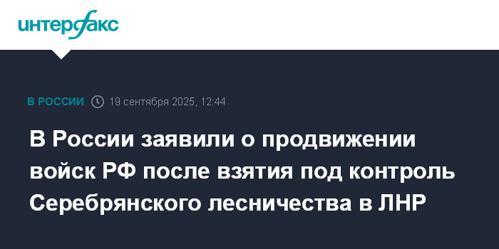 В России заявили о продвижении войск РФ после взятия под контроль Серебрянского лесничества в ЛНР