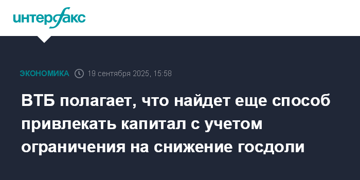ВТБ полагает, что найдет еще способ привлекать капитал с учетом ограничения на снижение госдоли
