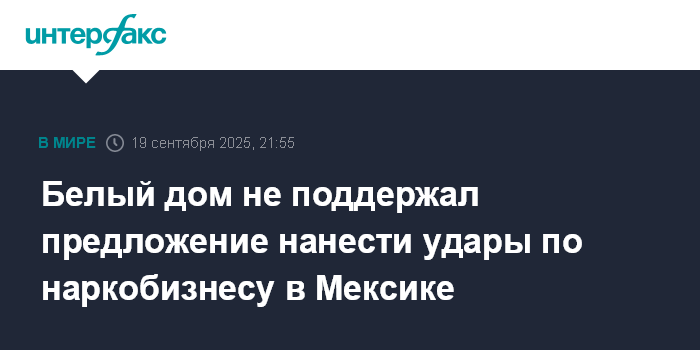 Москва. 19 сентября. INTERFAX.RU - Управление по борьбе с наркотиками - агентство (DEA) в составе Минюста США - ранее в 2025 году призвало нанести удары по объектам наркокартелей на территории Мексики, что вызвало возражения Белого дома, пишет Washington Post со ссылкой на источники.