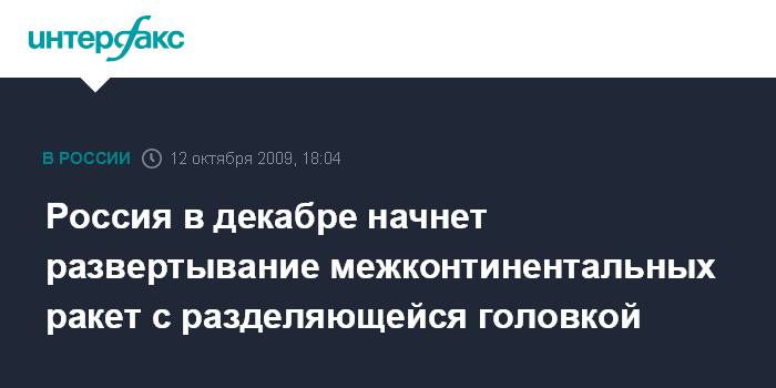Россия в декабре начнет развертывание межконтинентальных ракет с разделяющейся головкой