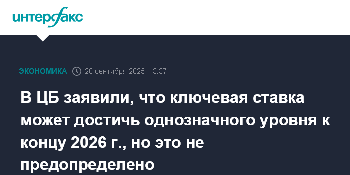 В ЦБ заявили, что ключевая ставка может достичь однозначного уровня к концу 2026 г., но это не предопределено