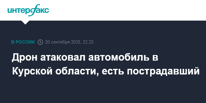 Москва. 20 сентября. INTERFAX.RU - Беспилотник атаковал автомобиль в селе Дубовица Хомутовского района Курской области, ранен мужчина, сообщил врио губернатора региона Александр Хинштейн.