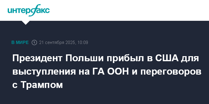 Президент Польши прибыл в США для выступления на ГА ООН и переговоров с Трампом