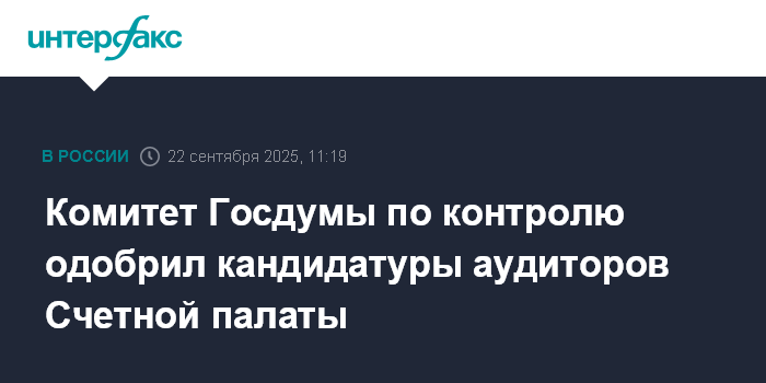 Москва. 22 сентября. INTERFAX.RU - Комитет Государственной думы по контролю на заседании в понедельник одобрил кандидатуры, предложенные фракциями ГД на должности аудиторов Счетной палаты.