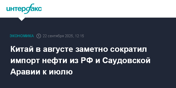 Китай в августе заметно сократил импорт нефти из РФ и Саудовской Аравии к июлю