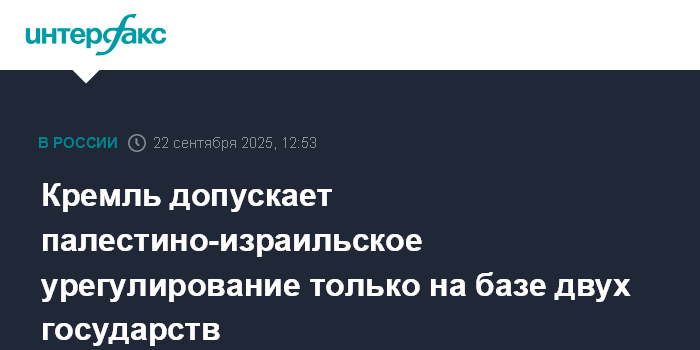 Москва. 22 сентября. INTERFAX.RU - Россия остается приверженной позиции о возможности урегулирования палестино-израильского конфликта на базе двухгосударственного подхода, это единственный возможный путь решения конфликта, заявил пресс-секретарь президента Дмитрий Песков.