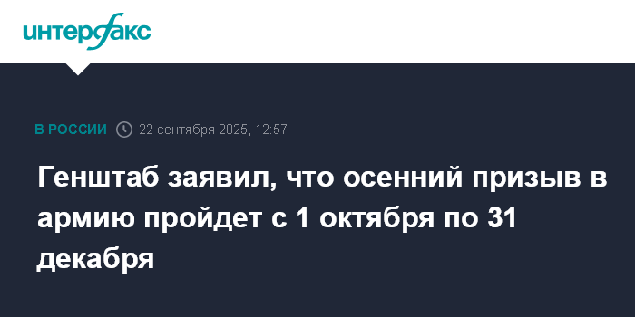 "Что касается осеннего призыва. Он будет проходить в установленные законодательством Российской Федерации сроки и в плановом порядке с 1 октября по 31 декабря 2025 года", - сказал Цимлянский на брифинге в понедельник.