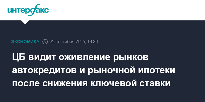 ЦБ видит оживление рынков автокредитов и рыночной ипотеки после снижения ключевой ставки