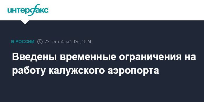 Москва. 22 сентября. INTERFAX.RU - Временные ограничения на прием и выпуск воздушных судов введены в международном аэропорту Калуга (Грабцево), сообщил представитель Росавиации Артем Кореняко в своем телеграм-канале.