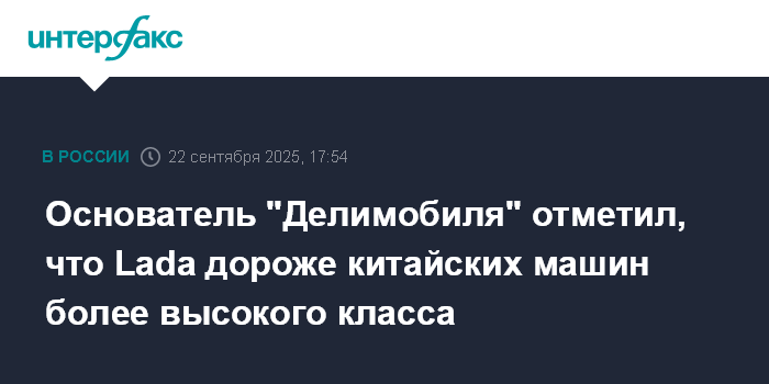 Основатель "Делимобиля" отметил, что Lada дороже китайских машин более высокого класса