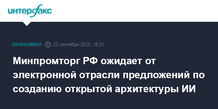 Москва. 22 сентября. INTERFAX.RU - Минпромторг РФ ожидает от отрасли предложений по подготовке нормативной правовой базы в части создания открытой архитектуры решений в области искусственного интеллекта, заявил замглавы Минпромторга Василий Шпак в ходе форума "Микроэлектроника 2025".