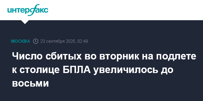 Число сбитых во вторник на подлете к столице БПЛА увеличилось до восьми