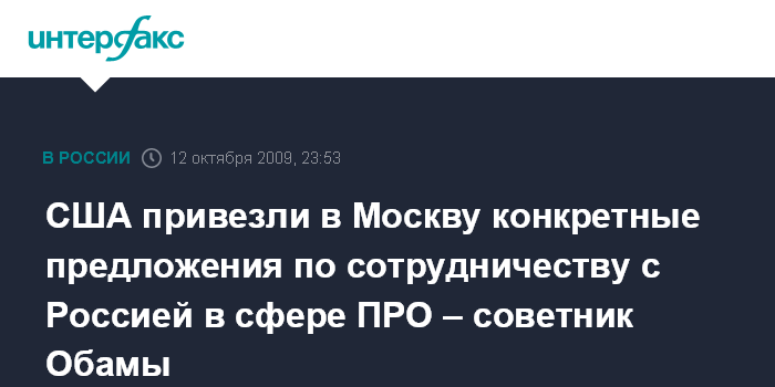 США привезли в Москву конкретные предложения по сотрудничеству с Россией в сфере ПРО – советник Обамы