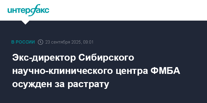 Экс-директор Сибирского научно-клинического центра ФМБА осужден за растрату