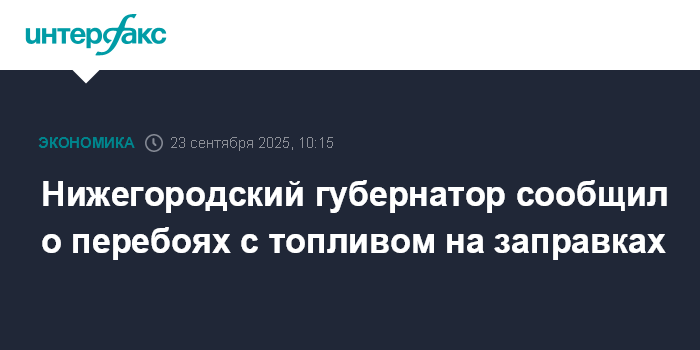 Москва. 23 сентября. INTERFAX.RU - В Нижегородской области возникли временные перебои с топливом на разных заправках, ситуация должна нормализоваться в ближайшие дни, сообщил губернатор региона Глеб Никитин.