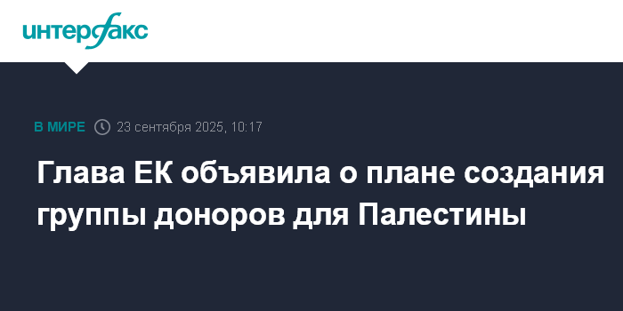 Москва. 23 сентября. INTERFAX.RU - Председатель Еврокомиссии Урсула фон дер Ляйен заявила о намерении создать группу доноров для поддержки Палестины и восстановления Газы.