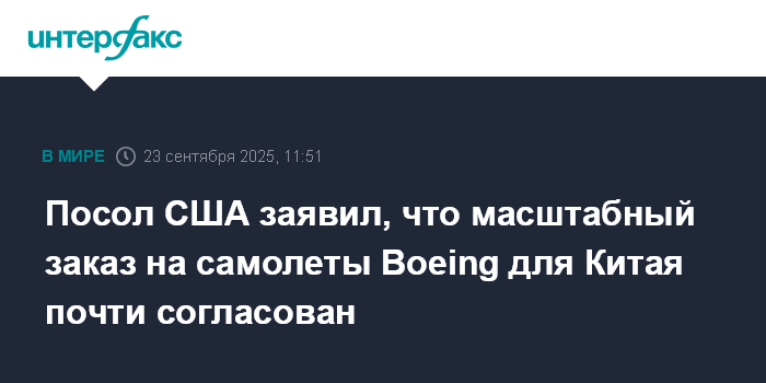 Посол США заявил, что масштабный заказ на самолеты Boeing для Китая почти согласован