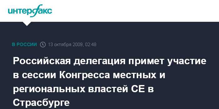 Страсбург. 13 октября. ИНТЕРФАКС - Российская делегация во главе с вице-спикером Совета Федерации Светланой Орловой примет участие в открывающейся во вторник в Страсбурге сессии Конгресса местных и региональных властей Совета Европы.