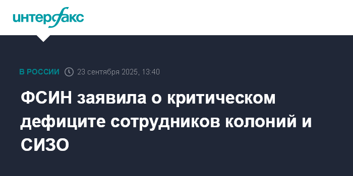 Москва. 23 сентября. INTERFAX.RU - Некомплект сотрудников уголовно-исполнительной системы (УИС) в РФ доходит в ряде регионов до 50 процентов, близок к критическому. Об этом сообщил заместитель директора Федеральной службы исполнения наказаний (ФСИН) Александр Розин.
